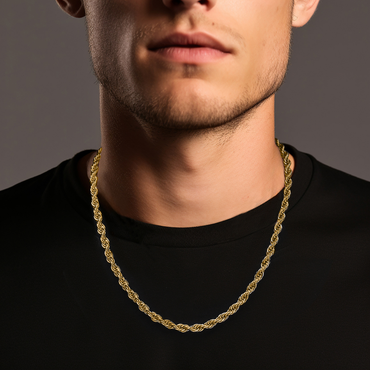 A gold rope chain is a statement of modern luxury — detailed, durable, and always in style. The unique rope-like texture adds depth and sophistication, making it one of the most popular men’s chain styles today.