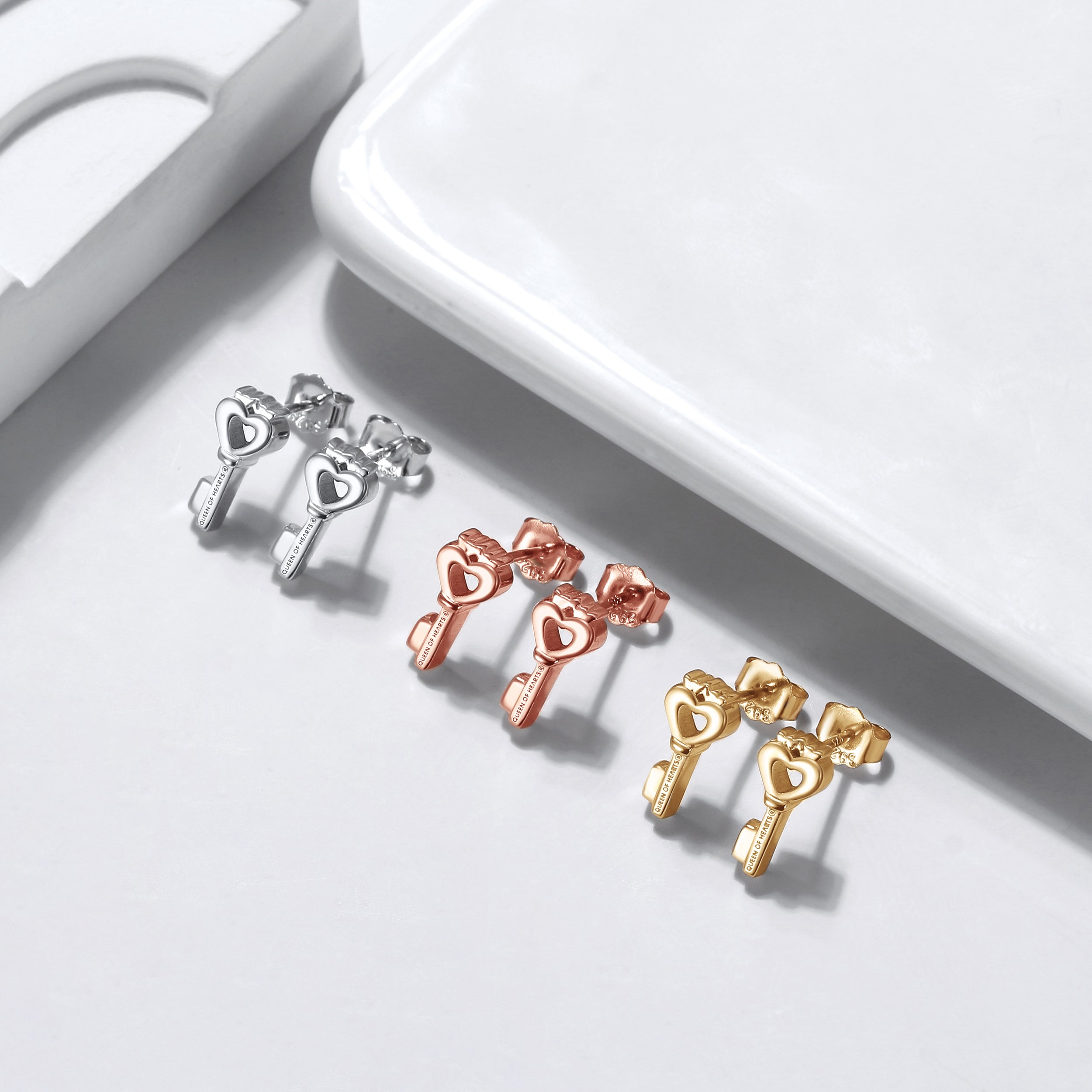 Home » Shop » Womens Jewellery » Silver Earrings » Crowned Heart Key Stud Earrings | Sterling Silver